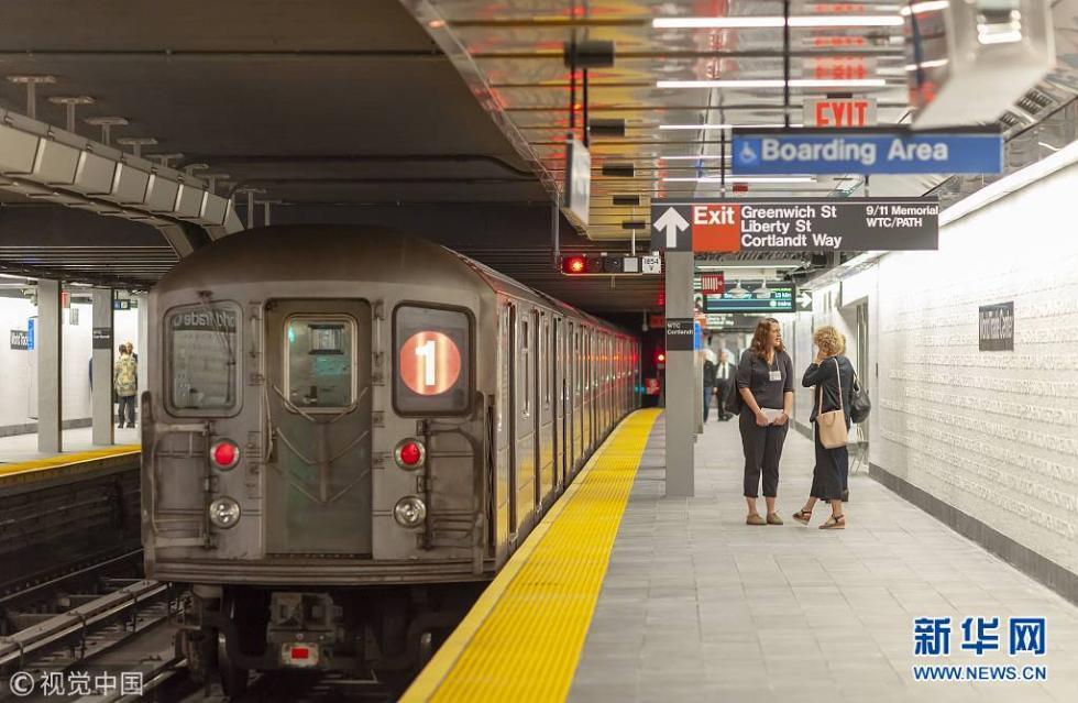 當(dāng)?shù)貢r(shí)間2018年9月8日,美國(guó)紐約,美國(guó)紐約市地鐵當(dāng)天重新開(kāi)放了2001年在“911”恐襲中遭到摧毀的科特蘭街車站。該站位于紐約地鐵一號(hào)線,在世貿(mào)中心大樓下方。報(bào)道稱,出于紀(jì)念意義,重建后的車站定名為“世貿(mào)科特蘭”站。車站重建耗資1.8億美元,并新增了一幅馬賽克裝飾,內(nèi)容是1776年的《美國(guó)獨(dú)立宣言》。(圖片來(lái)源:視覺(jué)中國(guó))