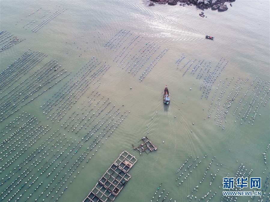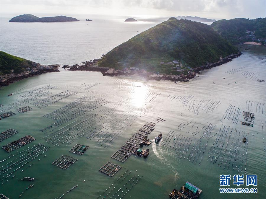 8月18日,漁船行駛在南麂島馬祖岙海域內的“海上牧場”大黃魚養(yǎng)殖區(qū)(無人機拍攝)。進入8月,浙江省溫州市平陽縣南麂鎮(zhèn)海域上大片的大黃魚、貽貝等特色海產品養(yǎng)殖區(qū)域迎來豐收季節(jié),養(yǎng)殖戶們駕駛漁船在養(yǎng)殖區(qū)海域進行打撈收獲,在碧海藍天下構成了一幅“海上牧場”的美麗豐收景象。近年來,南麂鎮(zhèn)政府引導漁民養(yǎng)殖戶充分發(fā)揮“靠海吃?!钡馁Y源優(yōu)勢,大力發(fā)展海洋養(yǎng)殖經濟和海島旅游經濟,實現了南麂由“生態(tài)美”向“產業(yè)美”,“產業(yè)美”向“經濟美”的轉變。同時該鎮(zhèn)堅持以大黃魚、貽貝等為特色產業(yè)支撐,精準發(fā)展高效海洋養(yǎng)殖業(yè),重點培養(yǎng)一批新型職業(yè)漁民,依靠專業(yè)技術支持,實現深海仿生養(yǎng)殖,讓好生態(tài)造就好品質,重點打造南麂養(yǎng)殖品牌,組建營銷網絡,拓展特色海產品市場。新華社記者 徐昱攝