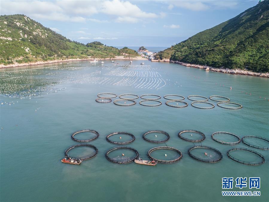 8月18日,漁船在南麂島馬祖岙海域的“海上牧場”大黃魚養(yǎng)殖區(qū)內(nèi)喂食(無人機(jī)拍攝)。南麂島位于浙江東南海域,水質(zhì)好,水溫、鹽度都適合大黃魚等養(yǎng)殖魚類的生長繁殖,因此當(dāng)?shù)氐乃a(chǎn)品也一直保持了較高的品質(zhì)和口碑。進(jìn)入8月,浙江省溫州市平陽縣南麂鎮(zhèn)海域上大片的大黃魚、貽貝等特色海產(chǎn)品養(yǎng)殖區(qū)域迎來豐收季節(jié),養(yǎng)殖戶們駕駛漁船在養(yǎng)殖區(qū)海域進(jìn)行打撈收獲,在碧海藍(lán)天下構(gòu)成了一幅“海上牧場”的美麗豐收景象。近年來,南麂鎮(zhèn)政府引導(dǎo)漁民養(yǎng)殖戶充分發(fā)揮“靠海吃海”的資源優(yōu)勢,大力發(fā)展海洋養(yǎng)殖經(jīng)濟(jì)和海島旅游經(jīng)濟(jì),實現(xiàn)了南麂由“生態(tài)美”向“產(chǎn)業(yè)美”,“產(chǎn)業(yè)美”向“經(jīng)濟(jì)美”的轉(zhuǎn)變。同時該鎮(zhèn)堅持以大黃魚、貽貝等為特色產(chǎn)業(yè)支撐,精準(zhǔn)發(fā)展高效海洋養(yǎng)殖業(yè),重點培養(yǎng)一批新型職業(yè)漁民,依靠專業(yè)技術(shù)支持,實現(xiàn)深海仿生養(yǎng)殖,讓好生態(tài)造就好品質(zhì),重點打造南麂養(yǎng)殖品牌,組建營銷網(wǎng)絡(luò),拓展特色海產(chǎn)品市場。新華社記者 徐昱攝