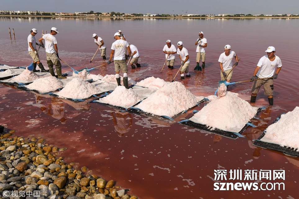 深圳新聞網(wǎng)訊? 法國(guó)艾格莫特,工人們?cè)邴}灘收集鹽晶體,那里的鹽場(chǎng)面積達(dá)1萬(wàn)公頃。在收獲了手工海鹽“鹽之花”之后,他們必須等到九月份才能收獲用作食鹽的鹽?!胞}之花”是世界上最昂貴的鹽之一(100g價(jià)格可達(dá)數(shù)千元)。