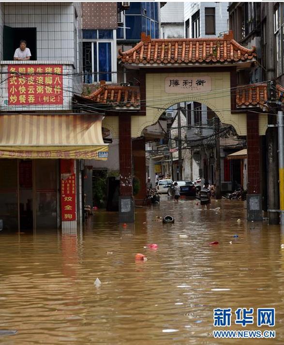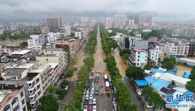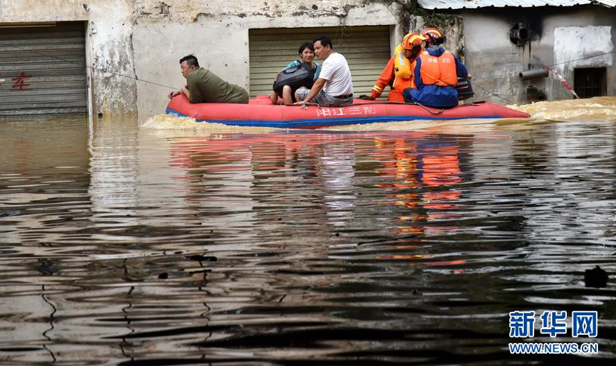 9月18日,陽(yáng)春市勝利街積水嚴(yán)重。 新華社記者 周科 攝