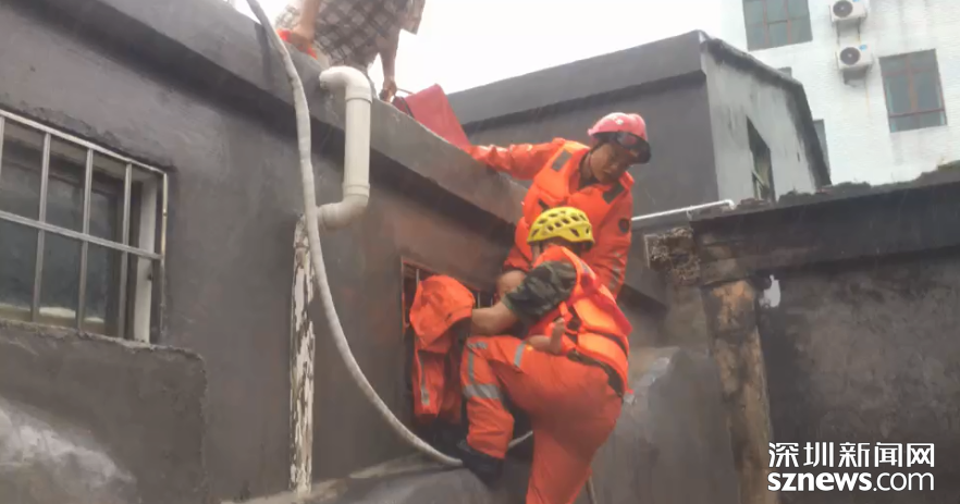 大鵬新區(qū)南澳東山碼頭籃球場(chǎng)旁邊樓房三樓,受臺(tái)風(fēng)影響水位上升,現(xiàn)場(chǎng)3人被困,大鵬直屬中隊(duì)緊急出動(dòng)1輛水陸兩用車,1輛消防車,6名指戰(zhàn)員趕赴現(xiàn)場(chǎng)。經(jīng)過1個(gè)多小時(shí)的救援,于13點(diǎn)26分成功解救2名成年人、一名小孩。