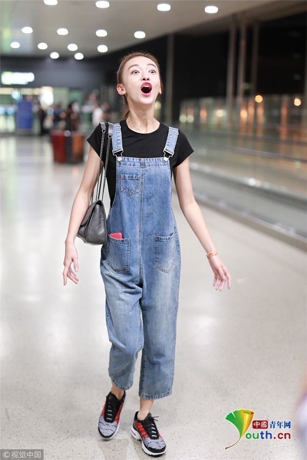 2018年9月19日,吳謹(jǐn)言現(xiàn)身機(jī)場從北京飛往上海。她身穿背帶褲嬌小玲瓏一改往日霸氣模樣,活潑俏麗清純可愛。