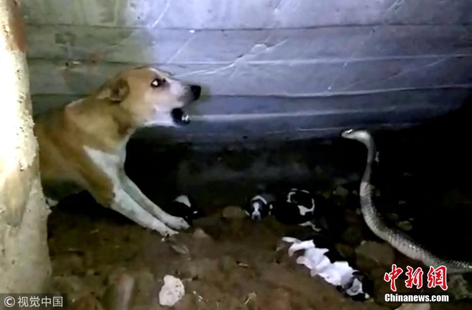 9月20日訊(具體拍攝時(shí)間不詳),印度奧里薩邦,一只寵物狗勇敢地挽救了新生幼犬的生命,它擊退了一條可怕的眼鏡蛇。面對(duì)一條巨大的斑點(diǎn)眼鏡蛇——世界上最毒的蛇之一——這位新媽媽勇敢保護(hù)僅出生兩天的幼崽。但不幸的是,盡管狗狗盡了最大的努力,蛇還是在救援人員救出幼犬之前仍殺死了4只小狗。圖片來源:視覺中國