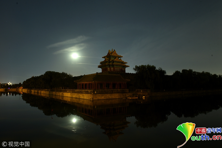 中國青年網北京9月25電 2018年9月24日,中秋節(jié),北京故宮西北角樓,許多市民和攝影愛好者聚集故宮角樓下拍攝月亮。圖片作者/視覺中國