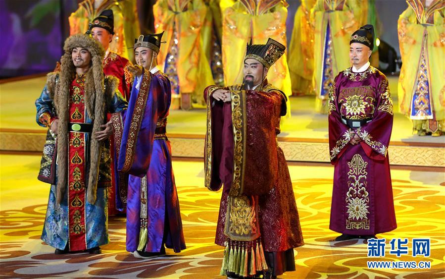 演員在表演《夢(mèng)長(zhǎng)安——大唐迎賓盛禮》(9月23日攝)。新華社記者 梁愛(ài)平 攝