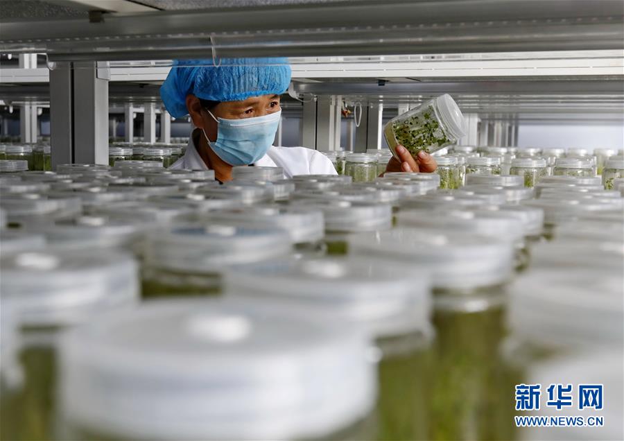 9月23日,張北縣小二臺(tái)鎮(zhèn)一家馬鈴薯育種中心的技術(shù)員在培育室查看薯苗長勢。 近年來,地處壩上地區(qū)的河北省張北縣因地制宜,積極推進(jìn)馬鈴薯產(chǎn)業(yè)化發(fā)展,形成了馬鈴薯繁種育種、商品薯種植、倉儲(chǔ)、加工為一體的產(chǎn)業(yè)鏈,帶動(dòng)農(nóng)民增收致富。 新華社記者楊世堯攝