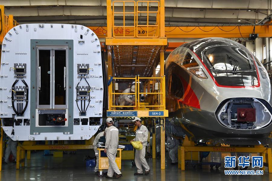 2018年5月10日,“復(fù)興號”動車組在總裝生產(chǎn)線上裝配。新華社記者 李紫恒 攝