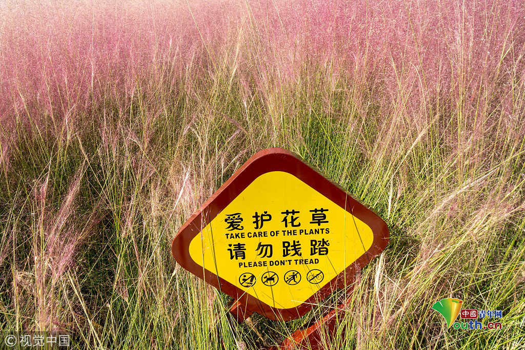 上海楊浦濱江粉黛亂子草成片盛開(kāi) 美不勝收