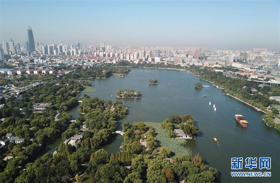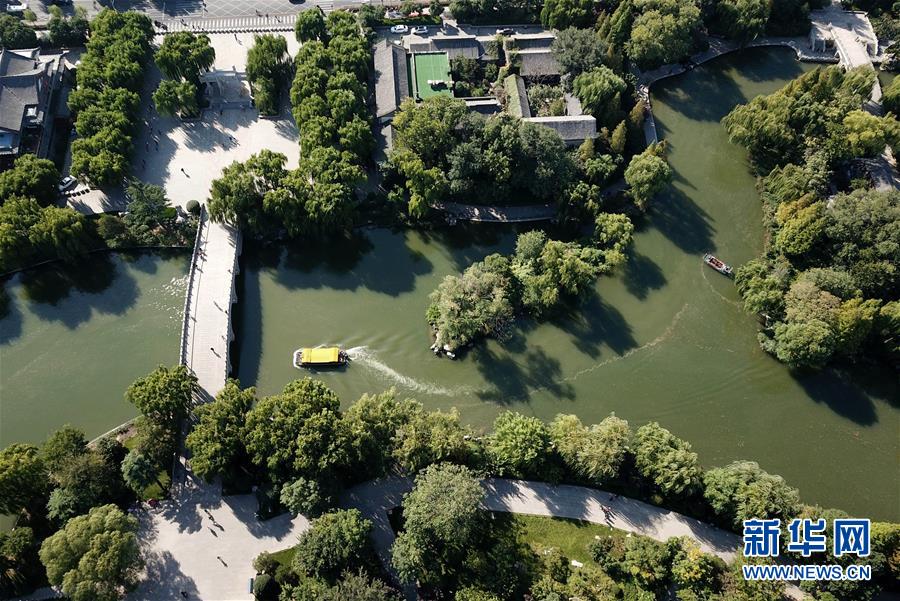 這是免費開放的濟南市大明湖景區(qū)(9月30日無人機拍攝)。近年來,山東積極推進國有景區(qū)免費開放工作,截至目前,山東實現(xiàn)免費開放的國有景區(qū)已達286處。新華社記者徐速繪攝