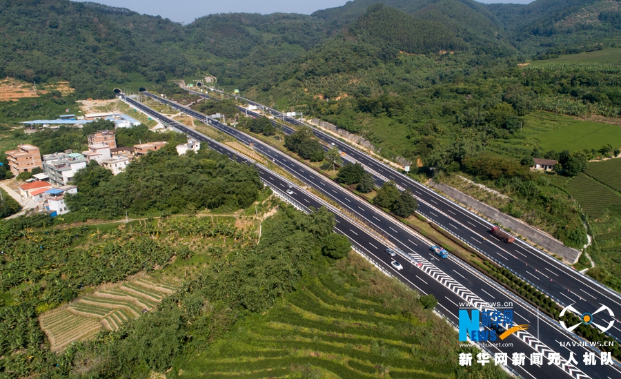 這是改擴建工程施工后的廈蓉高速南靖縣和溪路段(無人機拍攝)。新華網(wǎng) 肖和勇 攝