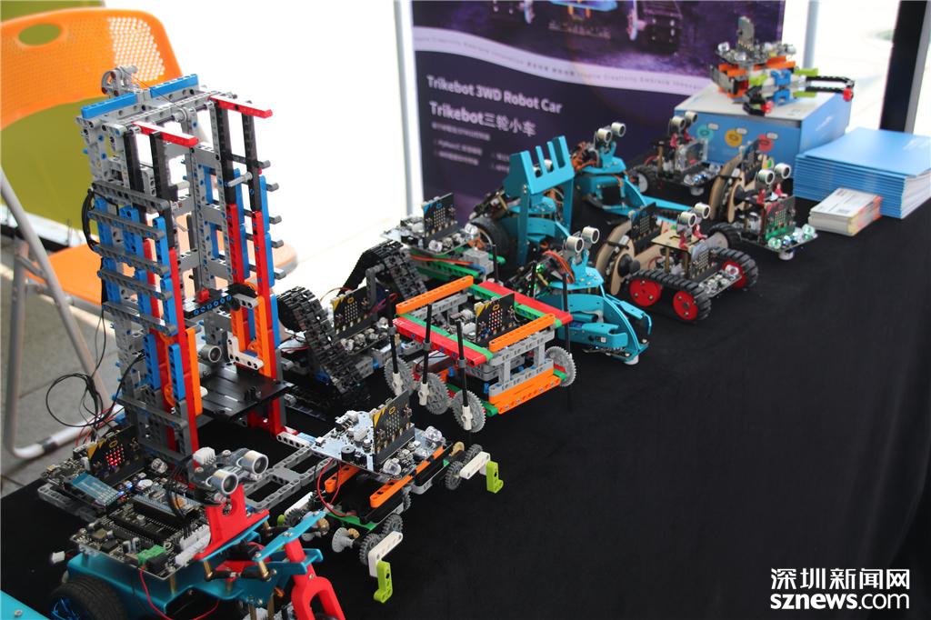針對小朋友教育的小機(jī)器人可以自行組裝、編程,圖為展位前的教育小機(jī)器人
