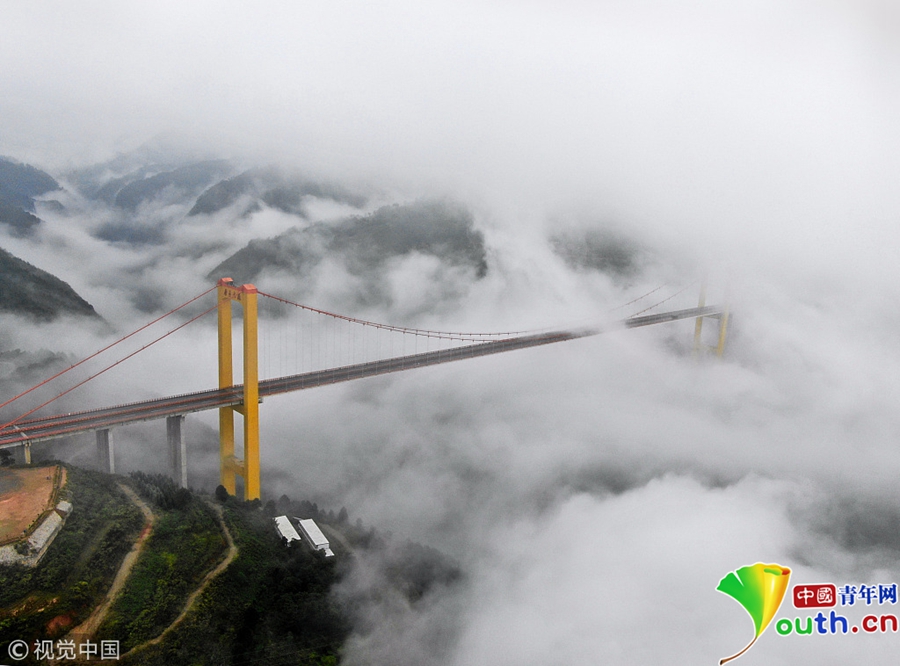 8月27日,位于貴州省甕安縣的清水河大橋云霧繚繞,景色如畫(huà)。