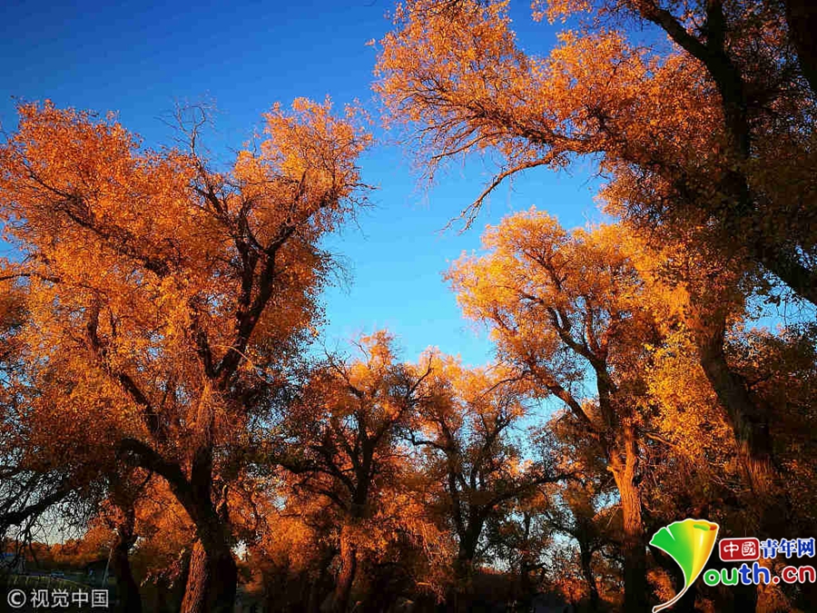 大片的胡楊樹(shù)葉由綠變黃,一眼望去,陽(yáng)光下金色的樹(shù)葉襯著湛藍(lán)的天空于風(fēng)中婆娑起舞。