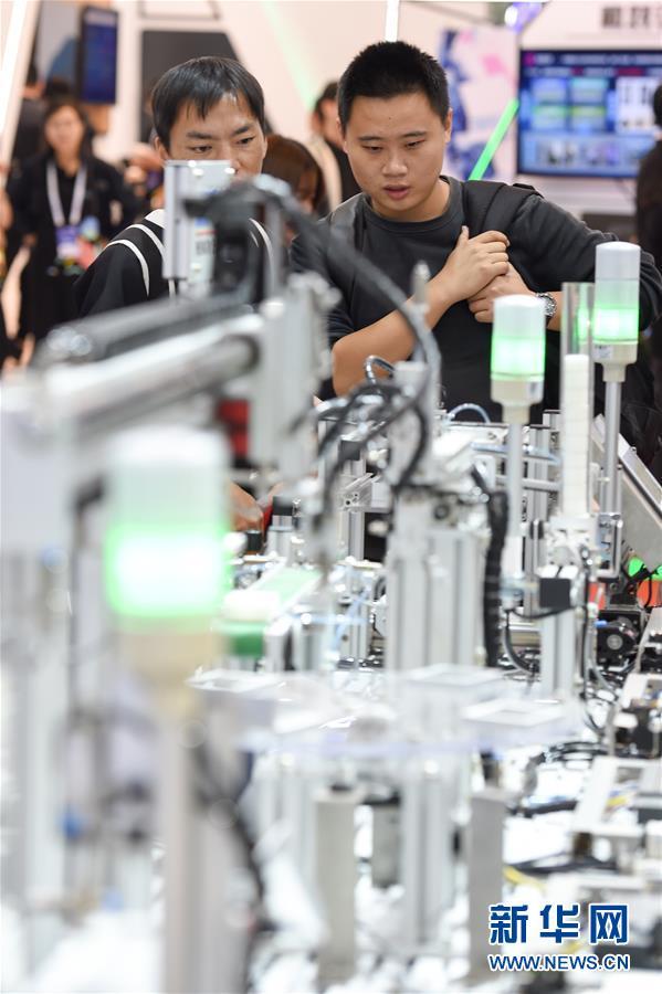 10月11日,觀眾在博覽會現(xiàn)場觀看模塊化自動生產線。 當日,2018世界智能制造大會·智領全球博覽會在南京國際博覽中心開展。本次博覽會以“賦能升級,智造未來”為主題,總展示面積約5萬平方米,共有1900多家國內外企業(yè)參會參展。博覽會將展示國內外智能制造領域的最新技術和頂尖產品,發(fā)布國內智能制造示范企業(yè)的最新發(fā)展成果,同時分享智能制造實際應用方面最前沿的解決方案。 新華社記者李博攝