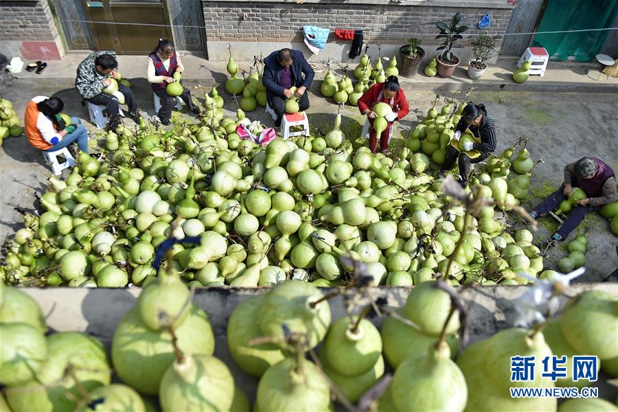 9月27日,山西省安澤縣和川鎮(zhèn)孔旺村的村民將葫蘆去皮。近日,山西省安澤縣和川鎮(zhèn)孔旺村種植的葫蘆喜獲豐收,村民們忙著將摘下的葫蘆去皮晾干。孔旺村于2016年成立葫蘆種植合作社,種植、采摘、加工等環(huán)節(jié)全部由貧困戶負(fù)責(zé),為貧困戶拓寬增收渠道。新華社記者 曹陽(yáng) 攝