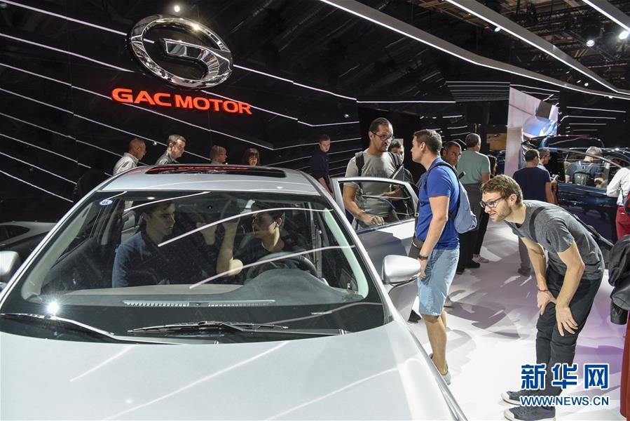 10月14日,在法國巴黎國際車展上,人們參觀廣汽傳祺品牌展臺。 當日,2018年巴黎國際車展閉幕。據(jù)主辦方統(tǒng)計,超過100萬人次參觀了本屆車展。 新華社記者 陳益宸 攝