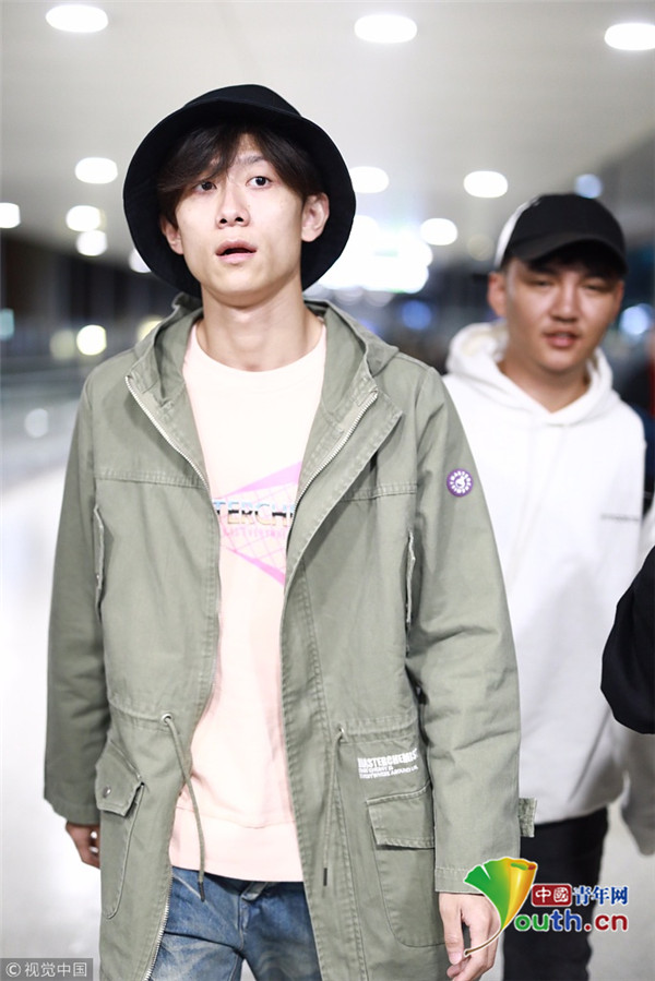 2018年10月14日,上海,張一山抵達(dá)上海機(jī)場(chǎng)。張一山戴漁夫帽眼袋嚴(yán)重瞬間老十歲, 用手擋臉?biāo)撇辉干乡R。