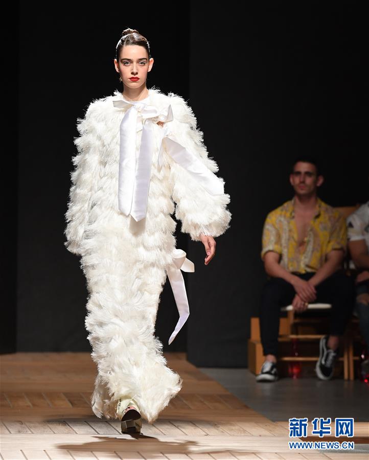 10月13日,在葡萄牙首都里斯本舉行的第51屆里斯本時裝周上,模特展示葡萄牙設(shè)計師路易斯·卡瓦略設(shè)計的新款時裝。 新華社記者張立云攝