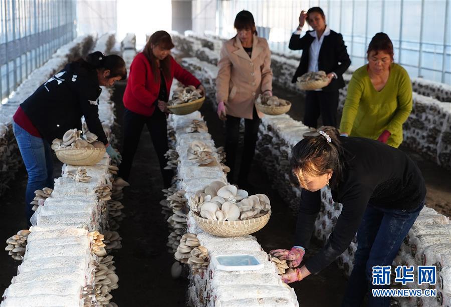 10月15日,黃連河村村民在林下生態(tài)產(chǎn)業(yè)園的大棚內(nèi)采摘蘑菇。新華社記者邵瑞 攝