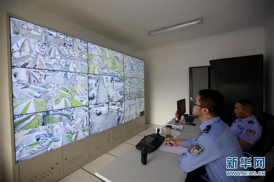 10月9日,工作人員在吳介巷美麗鄉(xiāng)村監(jiān)控室值班。 封閉式管理的村舍干凈整潔,河水清澈,白鷺飛翔。丹桂飄香的金秋時(shí)節(jié),記者來到上海閔行區(qū)梅隴鎮(zhèn)永聯(lián)村,眼前煥然一新的美麗鄉(xiāng)村,很難讓人相信兩年前這里是一片臟亂差的“城中村”。 新華社記者 張建松 攝
