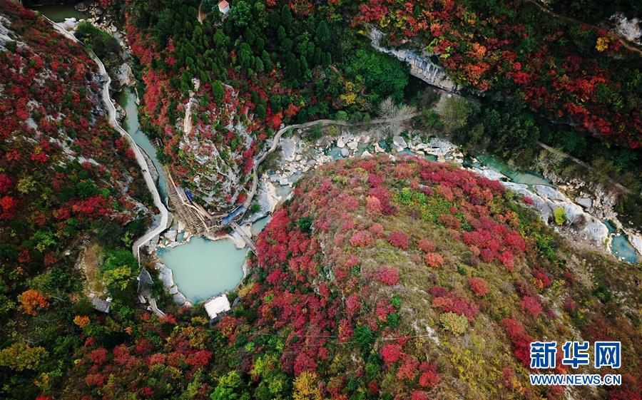 金秋時(shí)節(jié),甘肅省隴南市成縣西狹頌景區(qū)層林盡染,峽內(nèi)石崖、池潭、樹木、山峰構(gòu)成五彩斑斕的秋日美景圖,引人入勝。