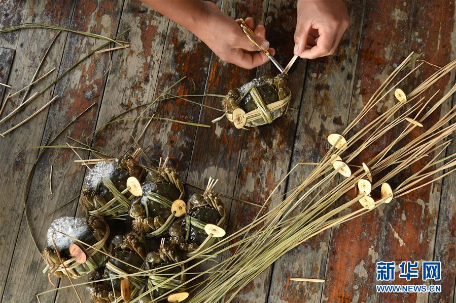 10月17日,湖州廟港人水產(chǎn)有限公司蟹農(nóng)在太湖養(yǎng)殖基地包裝大閘蟹。 時(shí)值重陽(yáng),太湖南岸的大閘蟹開始大批量上市,迎來(lái)豐收季。浙江省湖州市近年來(lái)結(jié)合太湖水治理,提升太湖漁業(yè)資源質(zhì)量。目前,湖州太湖蟹養(yǎng)殖面積3.6萬(wàn)畝左右,年產(chǎn)3000多噸。 新華社記者翁忻旸攝
