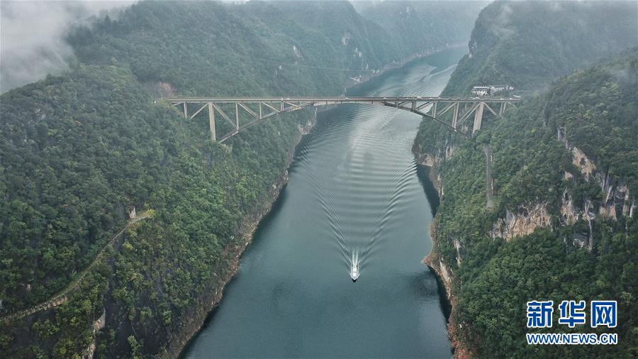 10月18日無人機航拍的江界河大橋。 當日,位于貴州甕安縣的江界河大橋云霧環(huán)繞,景美如畫。 新華社記者歐東衢攝