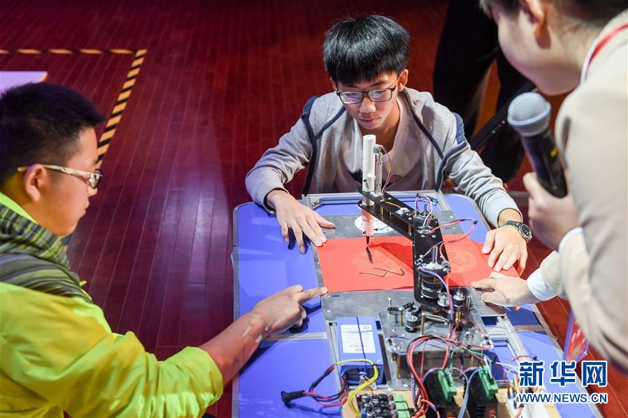10月21日,在位于安徽合肥的中國科學(xué)技術(shù)大學(xué),“Red Brick”隊參加機器人比賽。新華社記者張端攝