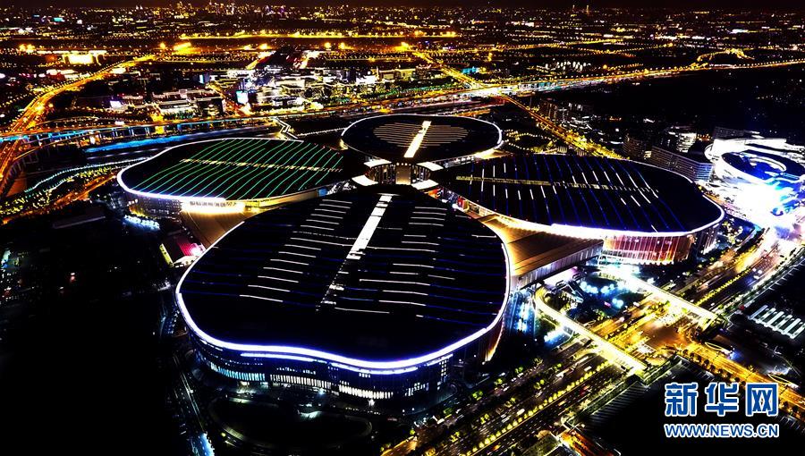 夜幕下的國(guó)家會(huì)展中心 “四葉草”燈光璀璨