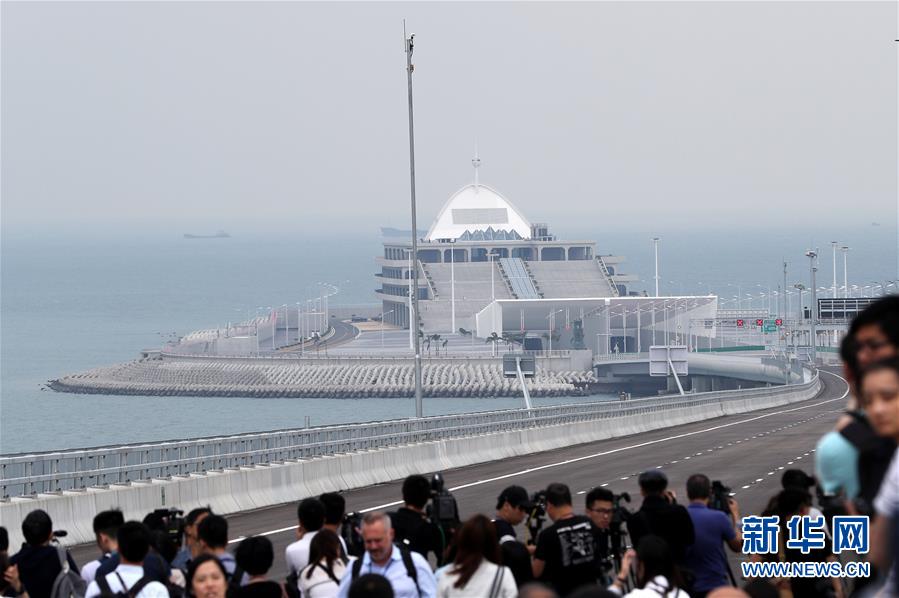 10月19日,媒體記者在港珠澳大橋香港連接路部分參觀。 港珠澳大橋開(kāi)通在即。 新華社記者 李鋼 攝