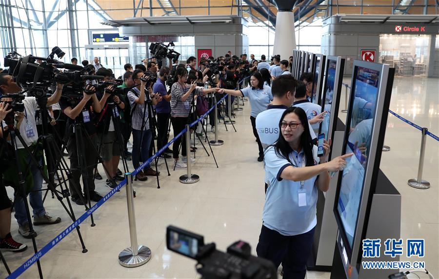 10月19日,媒體記者在香港口岸旅檢大樓參觀。 港珠澳大橋開(kāi)通在即。 新華社記者 李鋼 攝