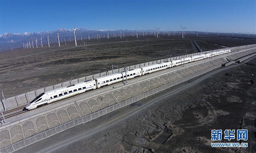 一輛和諧號(hào)動(dòng)車(chē)穿行在新疆烏魯木齊達(dá)坂城風(fēng)力發(fā)電場(chǎng)的“風(fēng)車(chē)森林”里(2014年11月16日無(wú)人機(jī)拍攝)。今年以來(lái),新疆穩(wěn)步推進(jìn)新能源參與“疆電外送”、擴(kuò)大與燃煤自備電廠調(diào)峰替代交易等多種電力交易方式,著力破解“綠色電力”上網(wǎng)難題,新能源發(fā)電量同比增加近13個(gè)百分點(diǎn),而棄電量和棄電比實(shí)現(xiàn)“雙降”,綠色發(fā)展理念進(jìn)一步落實(shí)。 新疆是我國(guó)重要的能源供應(yīng)和儲(chǔ)備基地,風(fēng)能、太陽(yáng)能儲(chǔ)量豐富。近年來(lái),新疆新能源裝機(jī)總量突破2700萬(wàn)千瓦,規(guī)模和占比均居全國(guó)前列。新華社記者 江文耀 攝