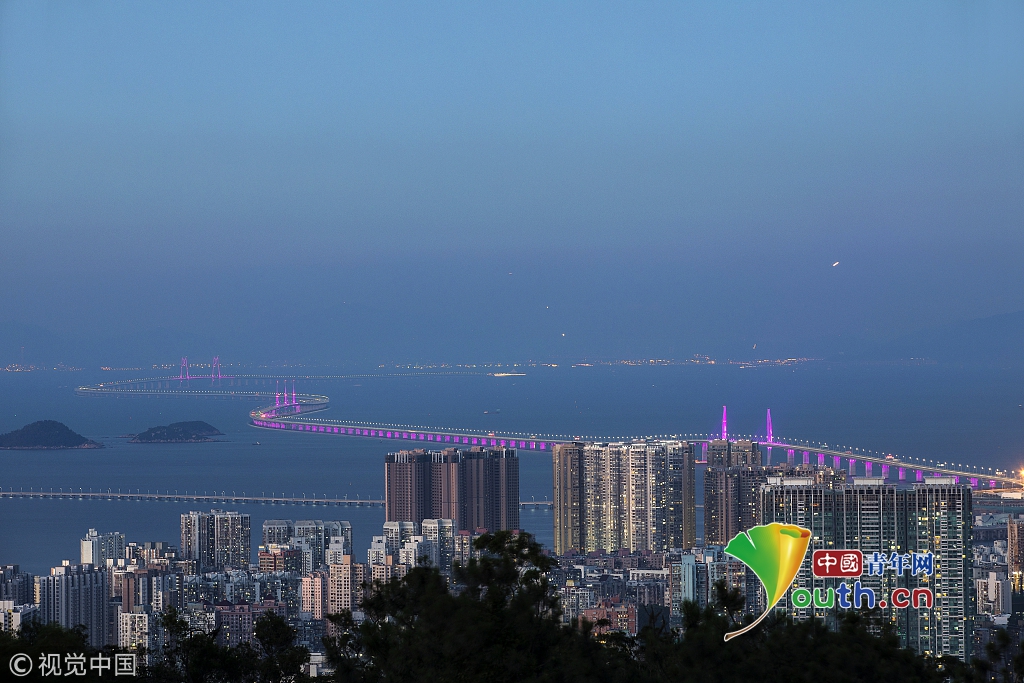 “超級(jí)工程”港珠澳大橋?qū)⒂?4日上午9時(shí)正式通車,一波美圖先睹為快。黃昆震 攝 圖片來源:視覺中國(guó)
