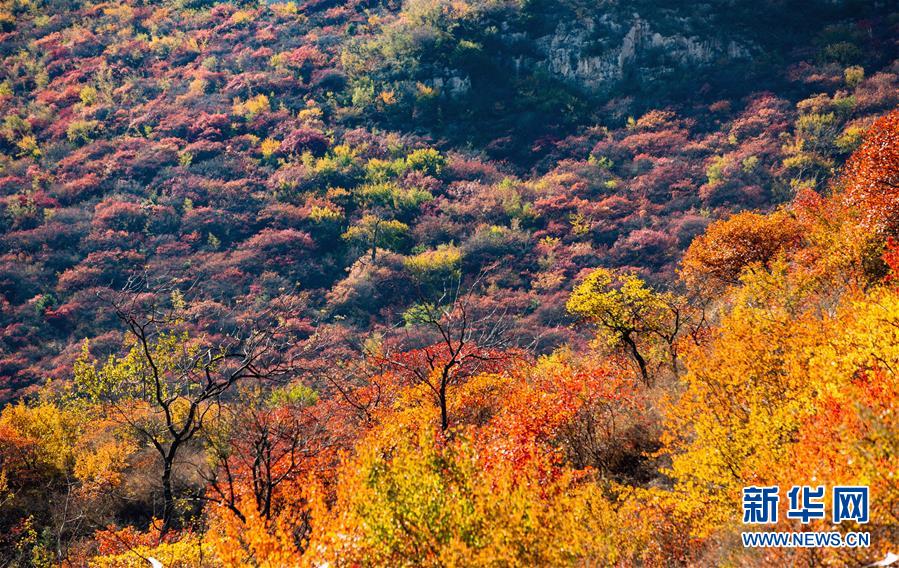 10月24日拍攝的河北省武安市賀進鎮(zhèn)后臨河村景色。 金秋時節(jié),位于太行山區(qū)的河北省武安市賀進鎮(zhèn)后臨河村的紅葉進入觀賞佳期。 新華社記者 王曉 攝