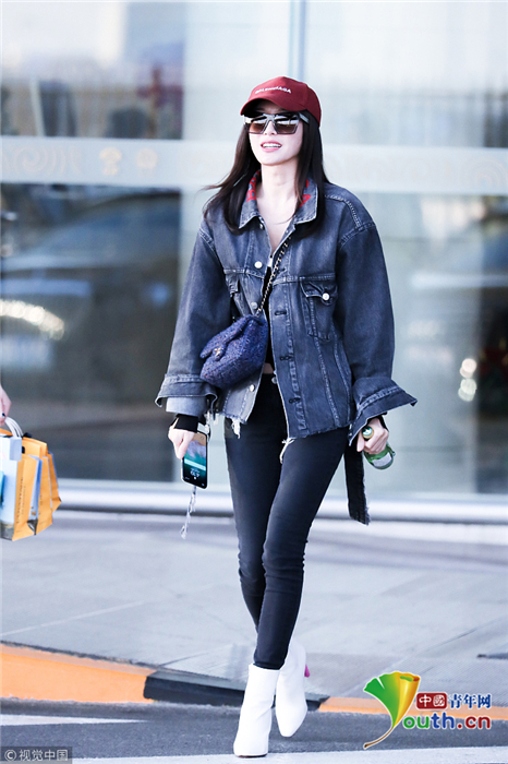 2018年10月24日,北京,“富察皇后”秦嵐現(xiàn)身機場。她頭戴小紅帽,身穿黑色緊身褲顯美腿筆直修長,上身穿著牛仔外套青春逼人,邊走邊甜笑玩“撩發(fā)殺”,靚麗吸睛。