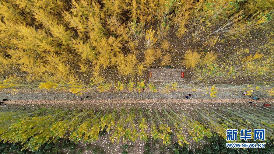 寧夏銀川市鳳凰公園秋景(10月20日無人機(jī)拍攝)。