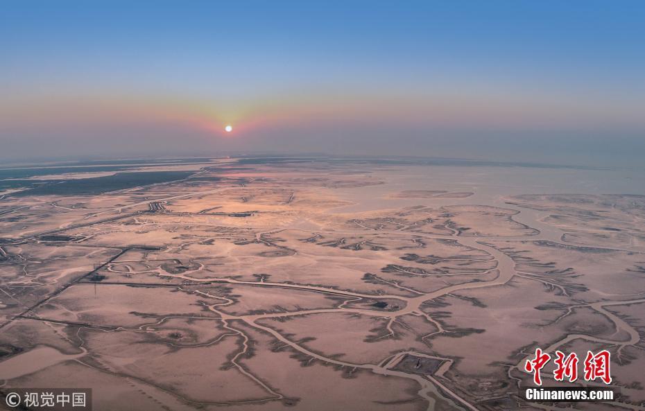 10月3日,山東東營,航拍黃河三角洲國家級自然保護區(qū)內壯觀的河流脈絡。圖片來源:視覺中國