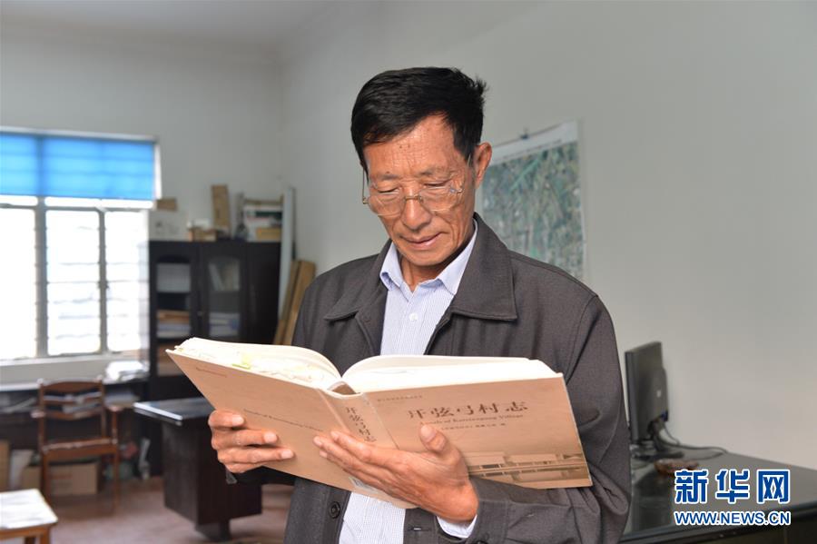 “50后”村民姚富坤(左)在村部閱讀《開弦弓村志》(10月23日攝)。姚富坤退休前是村里的農(nóng)技員,熱心于向外界介紹開弦弓村的傳統(tǒng)民俗和鄉(xiāng)土文化,參與了村志編修,被當?shù)厝朔Q為“農(nóng)民教授”。新華社記者 尹棟遜攝