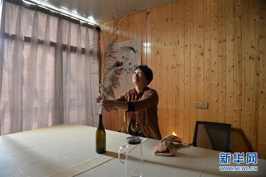 “60后”村民周小芳在家中整理將用于開民宿的房間(10月23日攝)。她家有一棟三層樓,準(zhǔn)備辦民宿。新華社記者 尹棟遜攝
