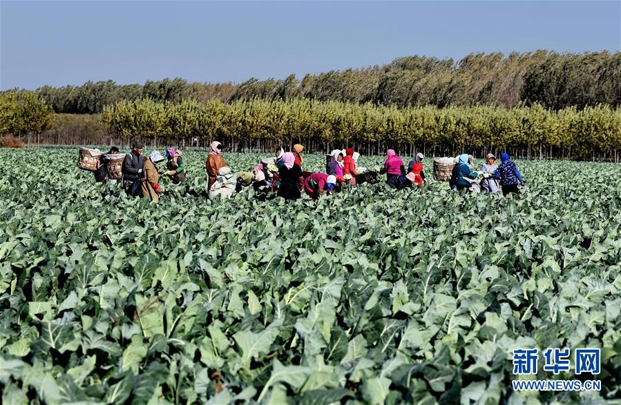 10月29日,樂亭縣馬頭營(yíng)鎮(zhèn)馬頭營(yíng)村的農(nóng)民在收獲菜花。