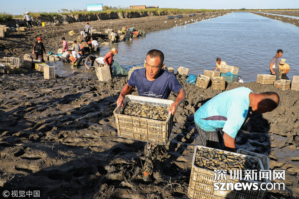 緊挨著黃海的大片養(yǎng)殖區(qū),因?yàn)橐粭l濱海大道,被自然劃成南北兩個(gè)部分。挖蟶人從四面八方趕來(lái),或集體包車、或自駕摩托。這些機(jī)動(dòng)車密密地??吭跒I海大道一側(cè),綿延數(shù)公里。