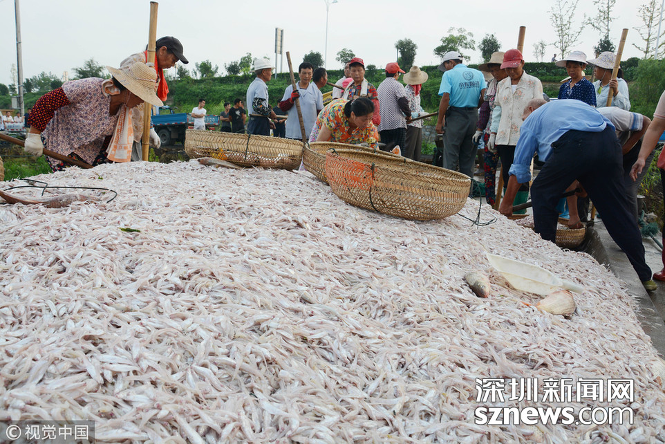 2018年8月16日,安徽巢湖漁民正在裝運(yùn)捕撈上來的毛魚和銀魚。