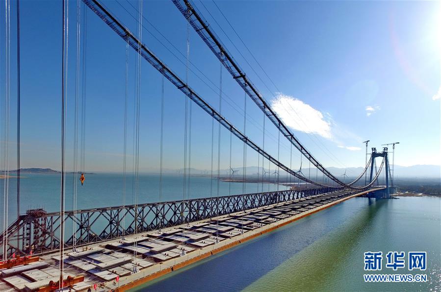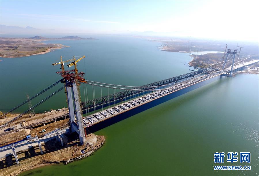 當(dāng)日,河北省懷來縣官廳水庫公路大橋主橋成功合龍。據(jù)介紹,該橋采用雙向四車道城市主干路標(biāo)準(zhǔn)建設(shè),設(shè)計為雙塔單跨懸索橋,全長1988米, 橋主塔高107.8米,橋?qū)?3.6米,主橋720米一跨過湖。