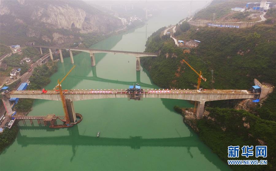 10月23日,在重慶涪陵,施工人員在渝懷鐵路涪秀二線重點(diǎn)工程——烏江右線大橋主跨合龍現(xiàn)場作業(yè)。 當(dāng)日,由中鐵四局承建的渝懷鐵路涪秀二線重點(diǎn)工程——烏江右線大橋主跨成功合龍,標(biāo)志著大橋主體工程全部順利結(jié)束。烏江右線大橋項(xiàng)目全程460.1米,主跨192米,跨越烏江和319國道。在兩年多的建設(shè)過程中,施工人員攻克了“不等高墩”“不對稱邊跨”“邊跨入隧”等多個技術(shù)難題。 新華社記者王全超攝