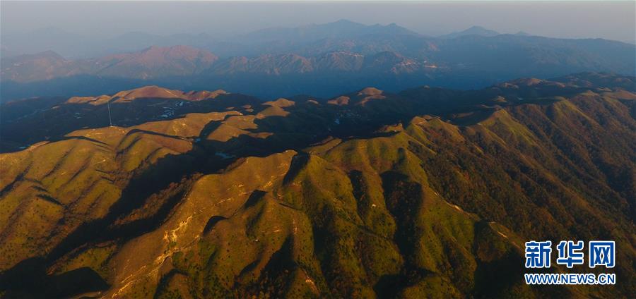 夕陽下的摩天嶺草場(chǎng)(11月2日無人機(jī)拍攝)。金秋時(shí)節(jié),廣西融水苗族自治縣桿洞鄉(xiāng)堯告村的摩天嶺草場(chǎng)天高云淡,景色迷人。新華社記者周華攝