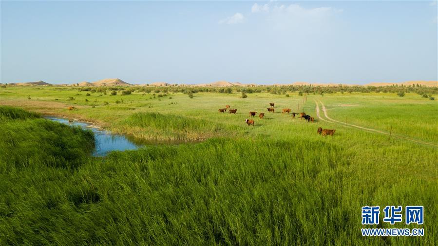 內(nèi)蒙古鄂爾多斯市恩格貝生態(tài)旅游區(qū)(6月8日無(wú)人機(jī)拍攝)。 新華社記者彭源攝