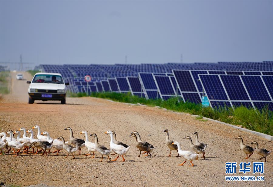 這是內(nèi)蒙古鄂爾多斯市杭錦旗庫(kù)布其沙漠生態(tài)太陽(yáng)能光伏光熱治沙發(fā)電綜合示范地(8月1日攝)?!鞍迳习l(fā)電、板下種草、板間養(yǎng)殖”,目前該太陽(yáng)能發(fā)電項(xiàng)目治沙面積達(dá)到了13.3平方公里,每年發(fā)電5億千瓦時(shí),實(shí)現(xiàn)銷售收入4.5億元。其社會(huì)效益、生態(tài)效益、民生效益、經(jīng)濟(jì)效益十分顯著。