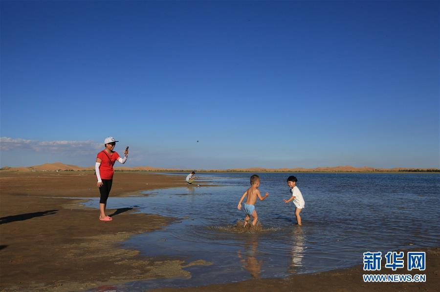 游客在庫(kù)布其沙漠中的內(nèi)蒙古鄂爾多斯市達(dá)拉特旗響沙灣景區(qū)的沙地上蕩秋千(7月31日攝)。依托庫(kù)布其沙漠特有的自然風(fēng)光和多年生態(tài)建設(shè)的成果,當(dāng)?shù)亟ǔ身懮碁?、七星湖、恩格貝等生態(tài)旅游景區(qū)。近十年來(lái),鄂爾多斯市生態(tài)旅游景區(qū)累計(jì)接待游客近1000萬(wàn)人次,實(shí)現(xiàn)收入24.6億元。