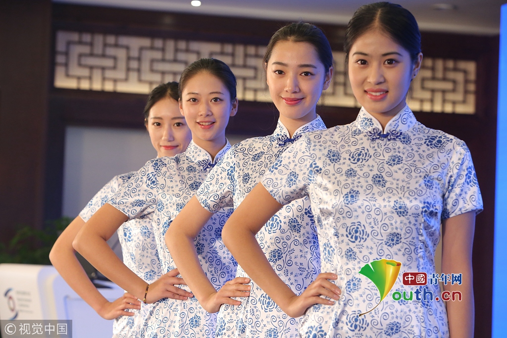 2014年11月17日,世界互聯(lián)網大會直播演練在浙江烏鎮(zhèn)舉行。來自浙江傳媒學院的大學生們,身著一襲青花瓷紋旗袍亮相,顯得分外嫵媚,引人注目。